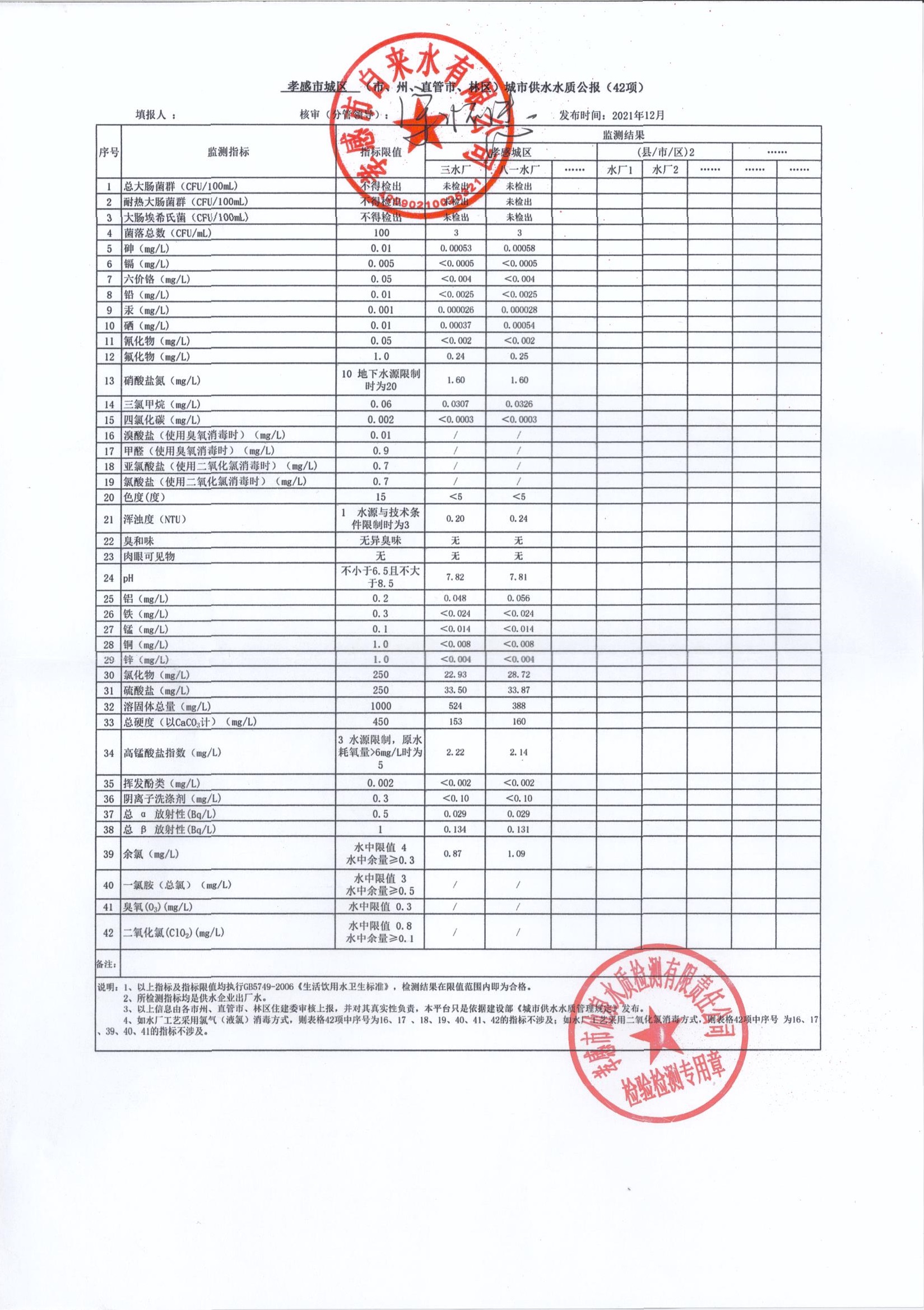 2021年12月水質報告