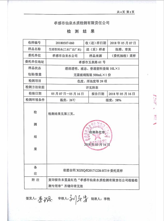 2018年5月水質(zhì)報告