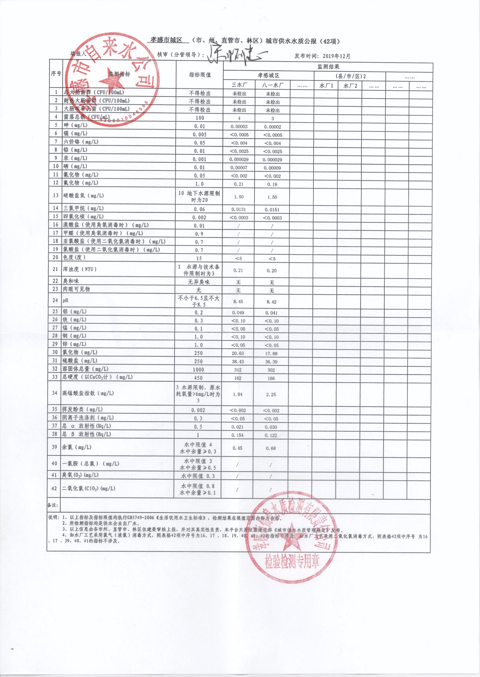 2019年12月水質(zhì)報(bào)告