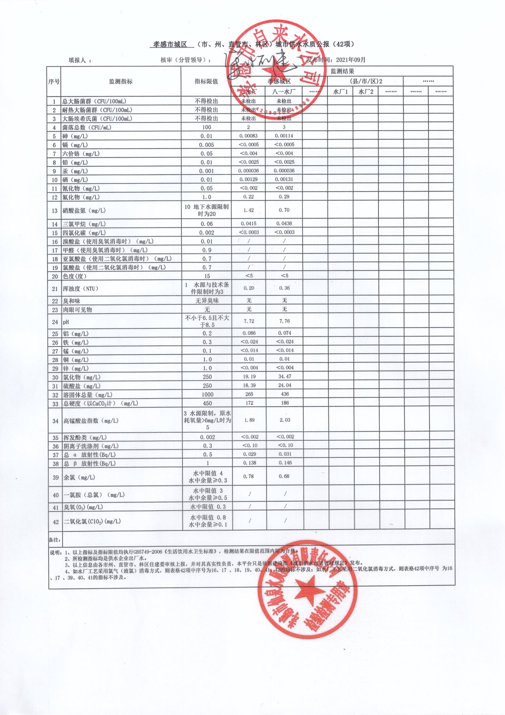 2021年9月水質(zhì)報告